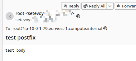 [root@ip-10-0-1-79 ~]# echo "test body" | mailx -s "test postfix" root