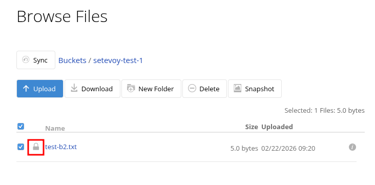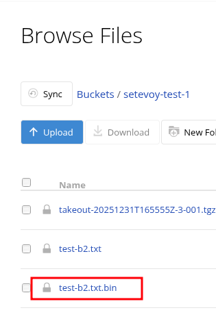 $ rclone copy /tmp/test-b2.txt setevoy-backblaze-testing-crypted