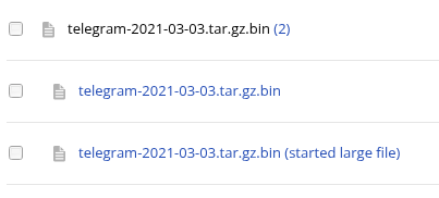 Але через помилку залишилось кілька incomplete uploads (“started large file” на скріншоті) – можна почистити з rclone cleanup або просто видалити вручну: