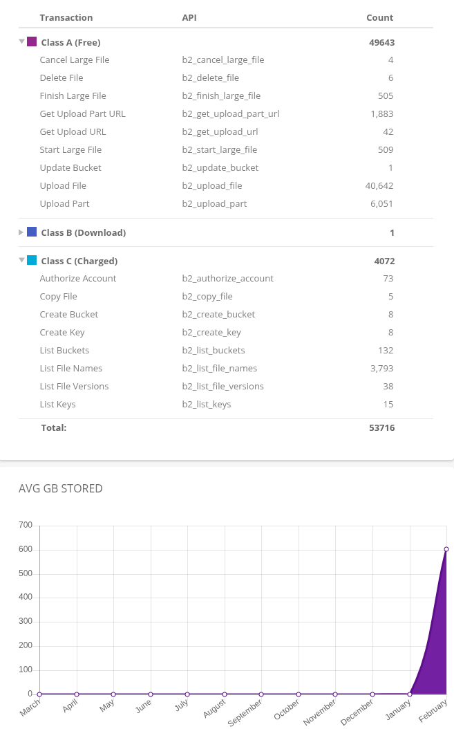Для моєї схеми найбільше буде Class C транзакцій, бо rclone при кожному sync перевіряє всі файли і їх modification time, тобто читає метадані (хоча це наче тюниться).