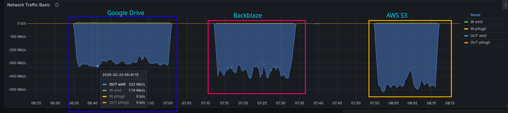 Взагалі планував другим сторейджем взяти AWS S3, але потім подивився на альтернативи та відкрив для себе Backblaze, який мені настільки сподобався, що я прямо в той жеж день оформив підписку і налаштував rclone на копіювання Backblaze теж.
