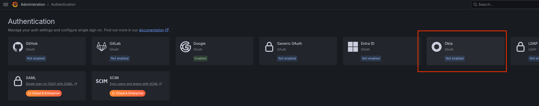 The only problem I ran into was mapping existing Grafana users from Google SSO to Okta users – took a bit of digging.