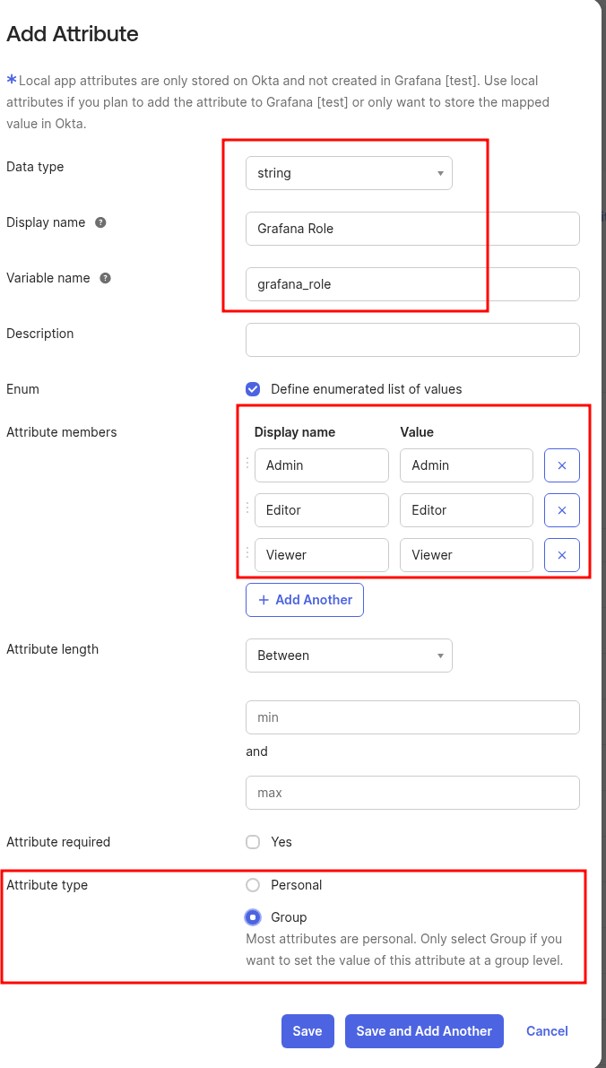 The idea is: we add a new Attribute to the Profile of the created App, tell Grafana which field contains the Grafana Role information, then set that attribute’s value for an Okta User or Okta Group – and it gets passed to Grafana.