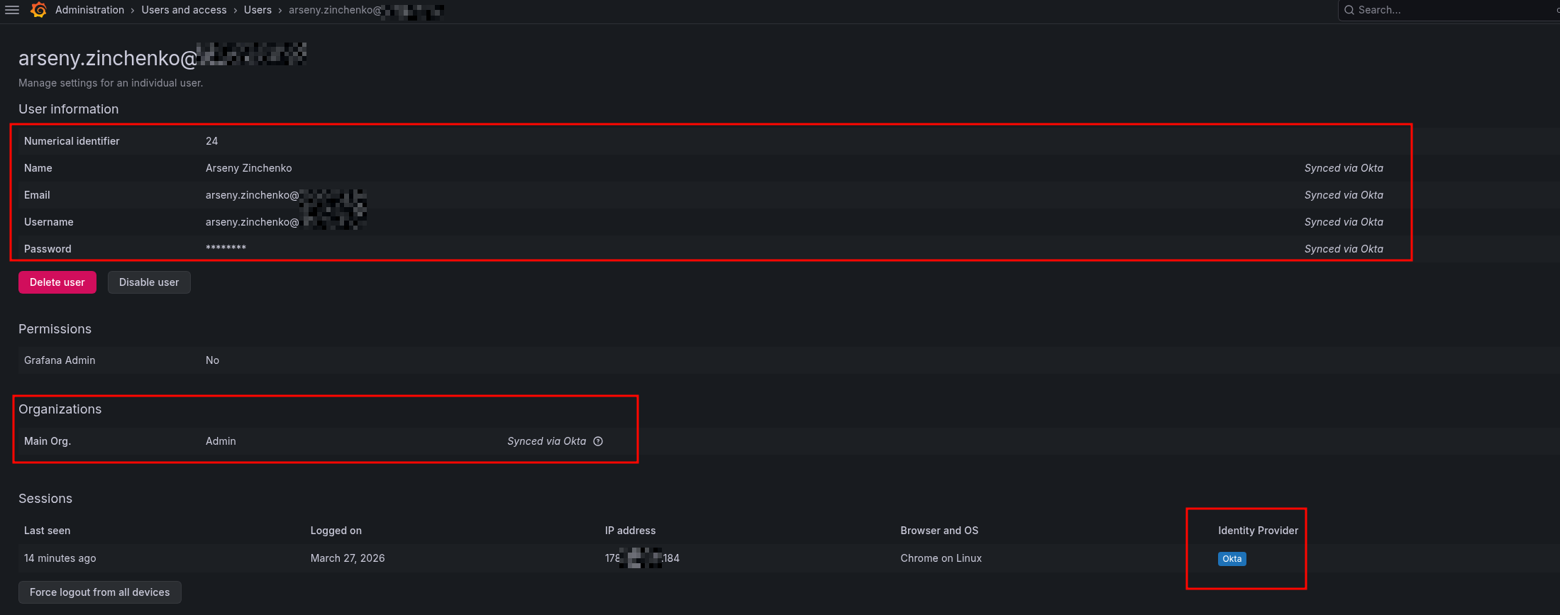 logger=oauth.okta t=2026-03-27T13:58:14.843471331Z level=debug msg="Received user info response" raw_json="{\"sub\":\"***\",\"name\":\"Arseny Zinchenko\",\"locale\":\"en_US\",\"email\":\"[email protected]\",\"preferred_username\":\"[email protected]\",\"given_name\":\"Arseny\",\"family_name\":\"Zinchenko\",\"zoneinfo\":\"America/Los_Angeles\",\"updated_at\":1774610676,\"email_verified\":true,\"grafana_role\":\"Admin\"}" data="unsupported value type"