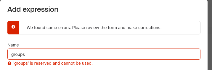 But then Okta complains that “‘groups’ is reserved and cannot be used“: