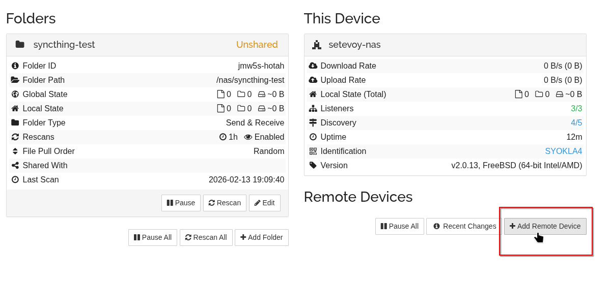 Тепер треба Syncthing на Linux додати в пул до Syncthing на FreeBSD.