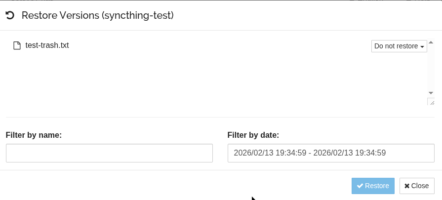 2026-02-13 19:23:54 INF Synced file (folder.label=syncthing-test folder.id=jmw5s-hotah folder.type=sendreceive file.name=test1.txt file.modified="2026-02-13 19:23:43.432316 +0200 EET" file.permissions=0644 file.size=15 file.blocksize=131072 blocks.local=0 blocks.download=1 log.pkg=model)