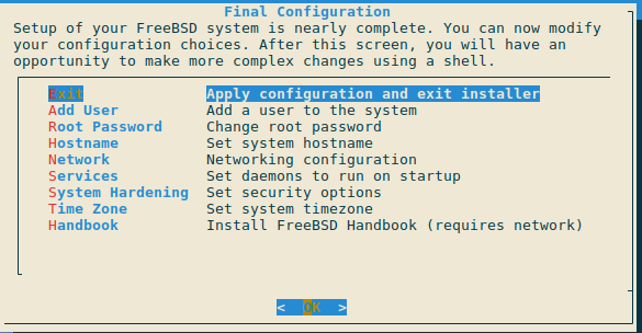 Установку будемо робити по SSH з bsdinstall – завантажимо систему в режимі LiveCD, включимо SSH, і далі вже з робочого ноута виконаємо установку системи.