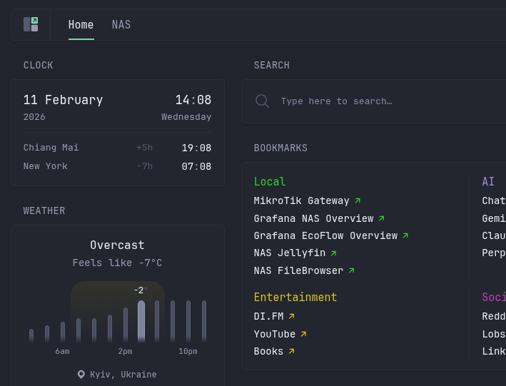 З тих, що в мене збережені, і вони, здається, найбільш популярні – це gethomepage/homepage та glanceapp/glance.