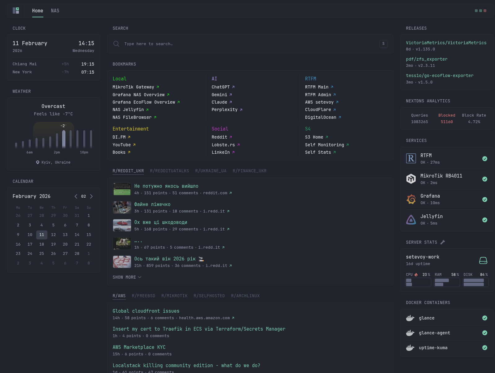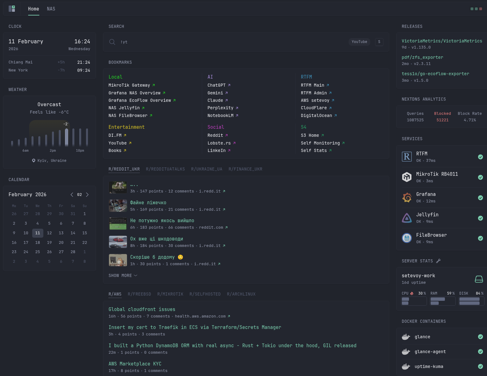 Але Homepage якась більш важка, з купою компонентів – фронтенд, бекенд, якісь рендери, а Glance – простіша, і при цьому, в принципі, має все, що я хотів побачити – хоча місцями це робиться через костилі 🙂