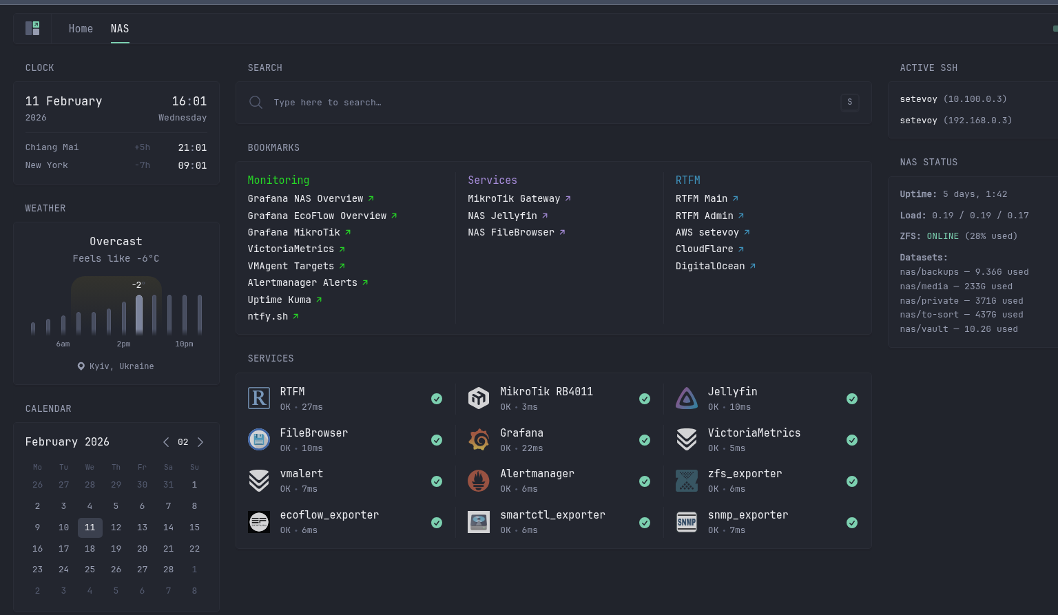 Колись побачив їх десь на Reddit, зберіг в закладки, і ось тепер, як в мене є всяка self-hosted тема з NAS (див. FreeBSD: Home NAS, part 1), Grafana і іншими корисними в роботі і побуті речами – то подумав, що було б непогано зробити і собі таку дашборду.