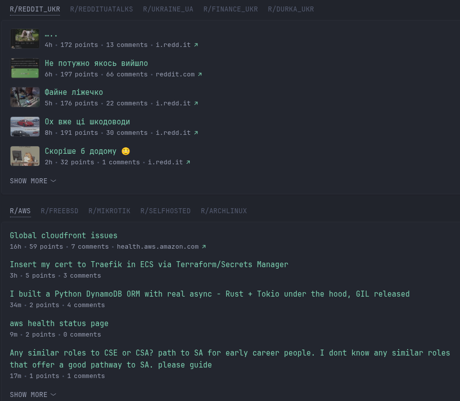 Далі приклад групування з Group – зробив собі окремі вкладки для різних сабредітів, але двома окремими групами – умовний “Reddit Ukraine” і “Reddit IT”: