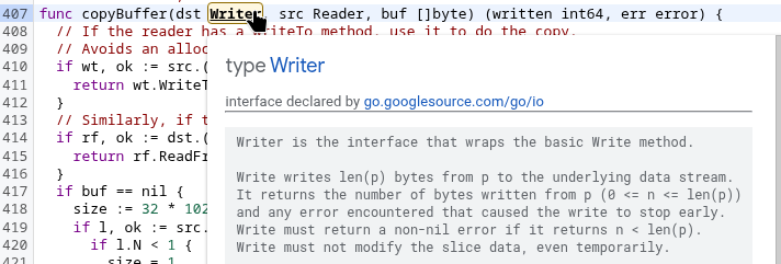 Якщо повернутись до нашого першого коду, то в io.Copy() першим параметром ми можемо передати будь-який тип, який має метод Write([]byte) (int, error), а в другий – аналогічно, тільки Read(), бо під капотом Copy() викликає copyBuffer(), а той просто створює буфер розміром в 32 кілобайти, чей який “переливає” з одного “каналу” в інший: