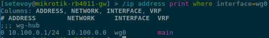 /ip address add address=10.100.0.1/24 interface=wg0 comment=wg-hub