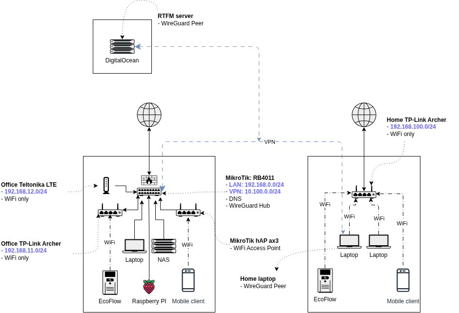 В моєму сетапі MikroTik RB4011 грає роль такого собі “VPN Hub” – всі клієнти підключаються до нього і об’єднуються в єдину мережу, і роль VPN трохи перебільшена тут дійсно важлива – бо це такий собі gateway, через які всі хости комунікують один з одним, і саме через VPN-тунелі з NAS мій скрипт для створення бекапів (про автоматизацію бекапів буде окремим великим постом, вже є в чернетках) підключається до всіх хостів, аби запустити rsync і стягнути до себе дані.