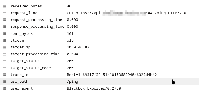 Ще хочеться бачити загальний час виконання запитів, але в полях ALB у нас три окремі значення – request_processing_time, target_processing_time та response_processing_time.