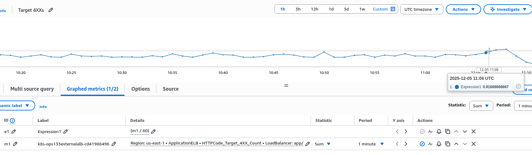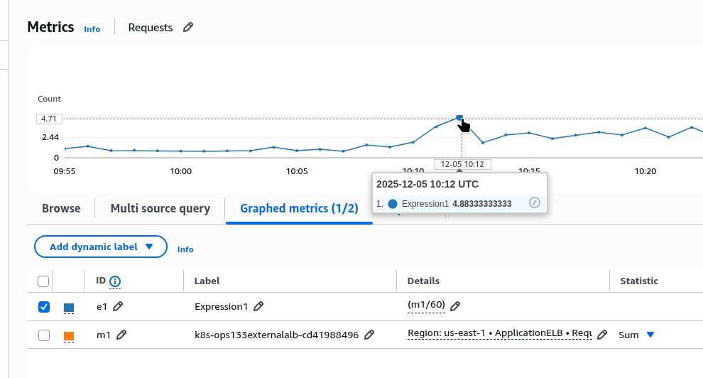Перевіряємо в CloudWatch, де з math просто робимо “sum requests in 1 minute /60”: