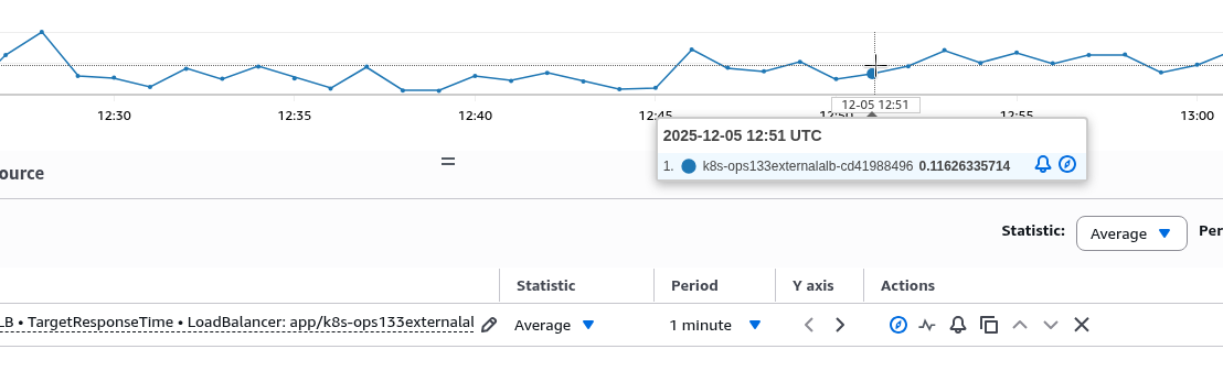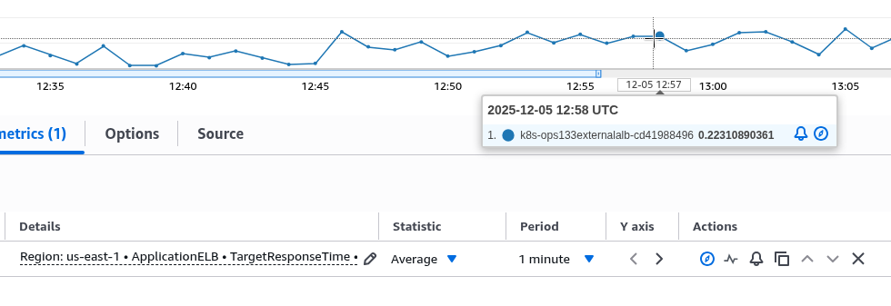 Але в CloudWatch – Target Response Time і Average за 1 хвилину у 12:21 буде 0.11: